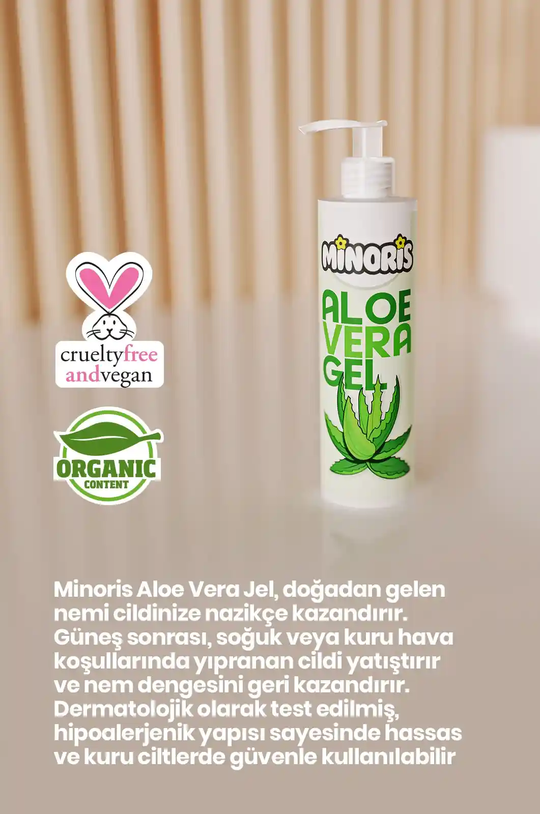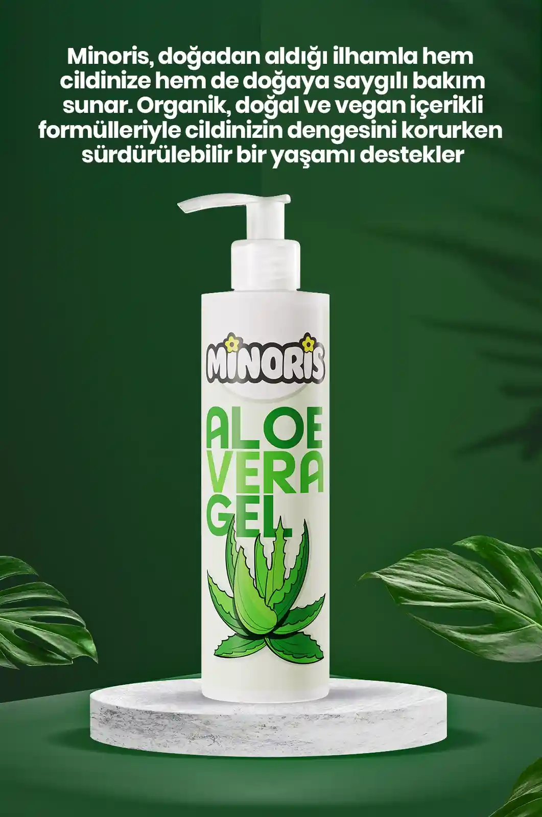 Minoris Aloe Vera Jel, doğadan gelen aktif içerikleriyle organik, vegan ve parfümsüz bir bakım sunar.