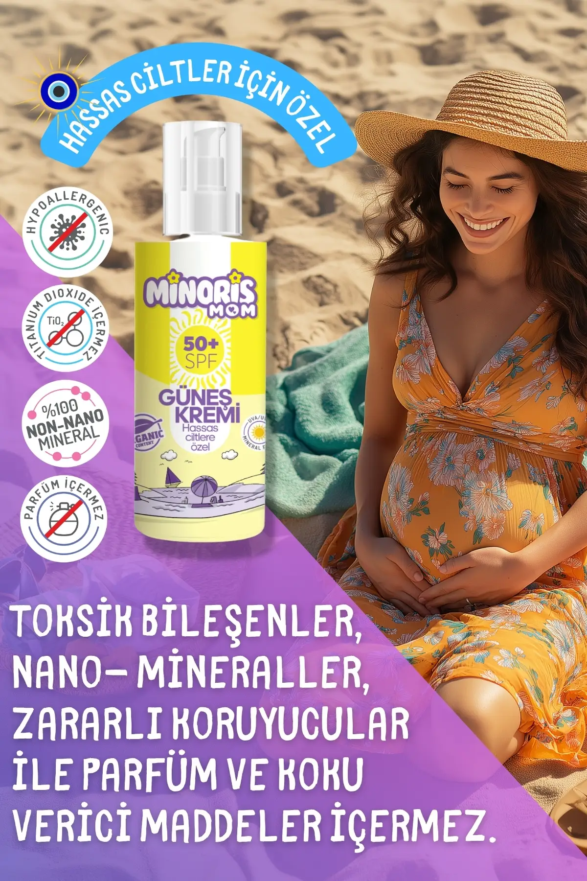 Minoris Mom Hassas Ciltler için Güneş Kremi 50 SPF+ (150ml): Ailenizin Cildine Doğal ve Etkili Güneş Koruması
